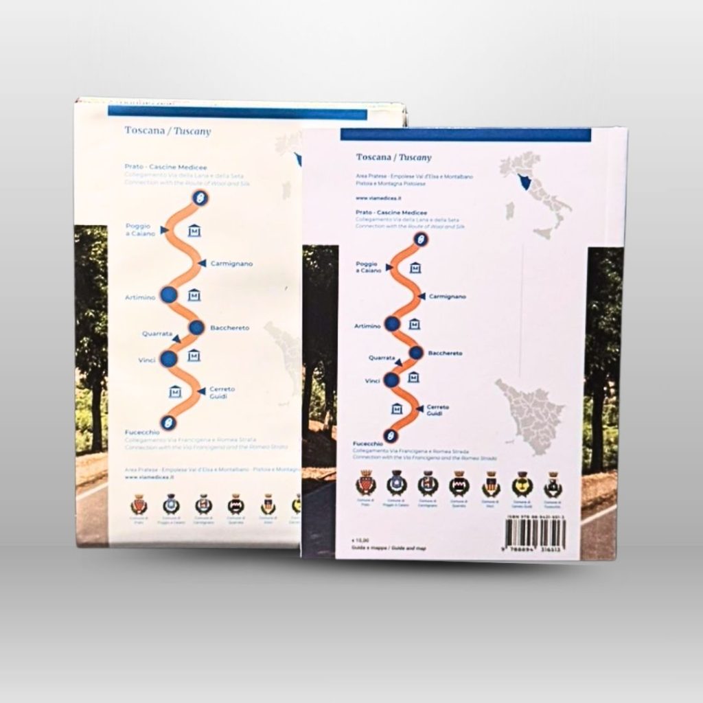 Carta escursionistica e guida ufficiale della Via Medicea da Prato a Fucecchio, tra storia, arte e paesaggi leggendari dei Medici.