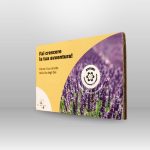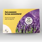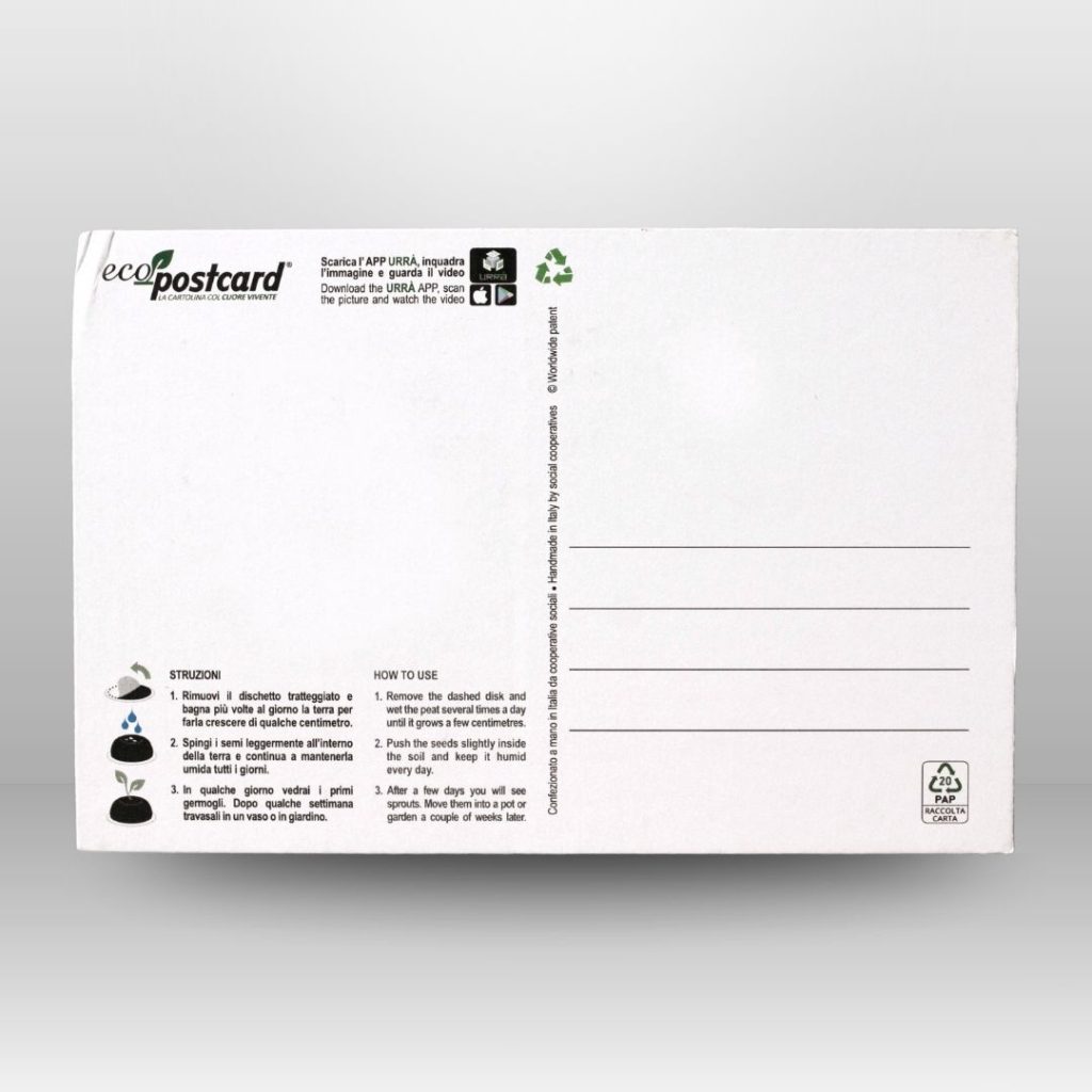 Realizzata con carta biodegradabile contenente terra e semi di lavanda, permette di far germogliare una pianta direttamente dalla cartolina stessa: basta adagiarla su un po’ di terra, annaffiarla e lasciar fare alla natura.