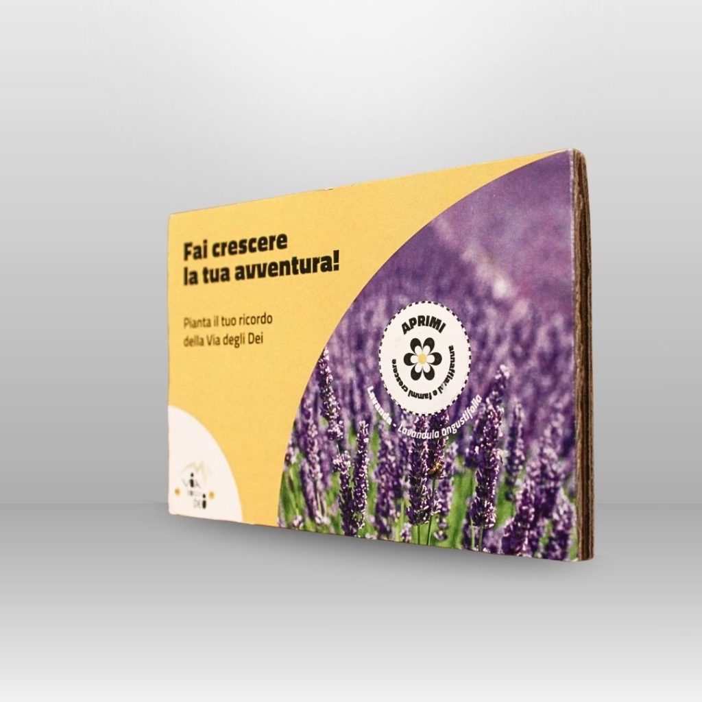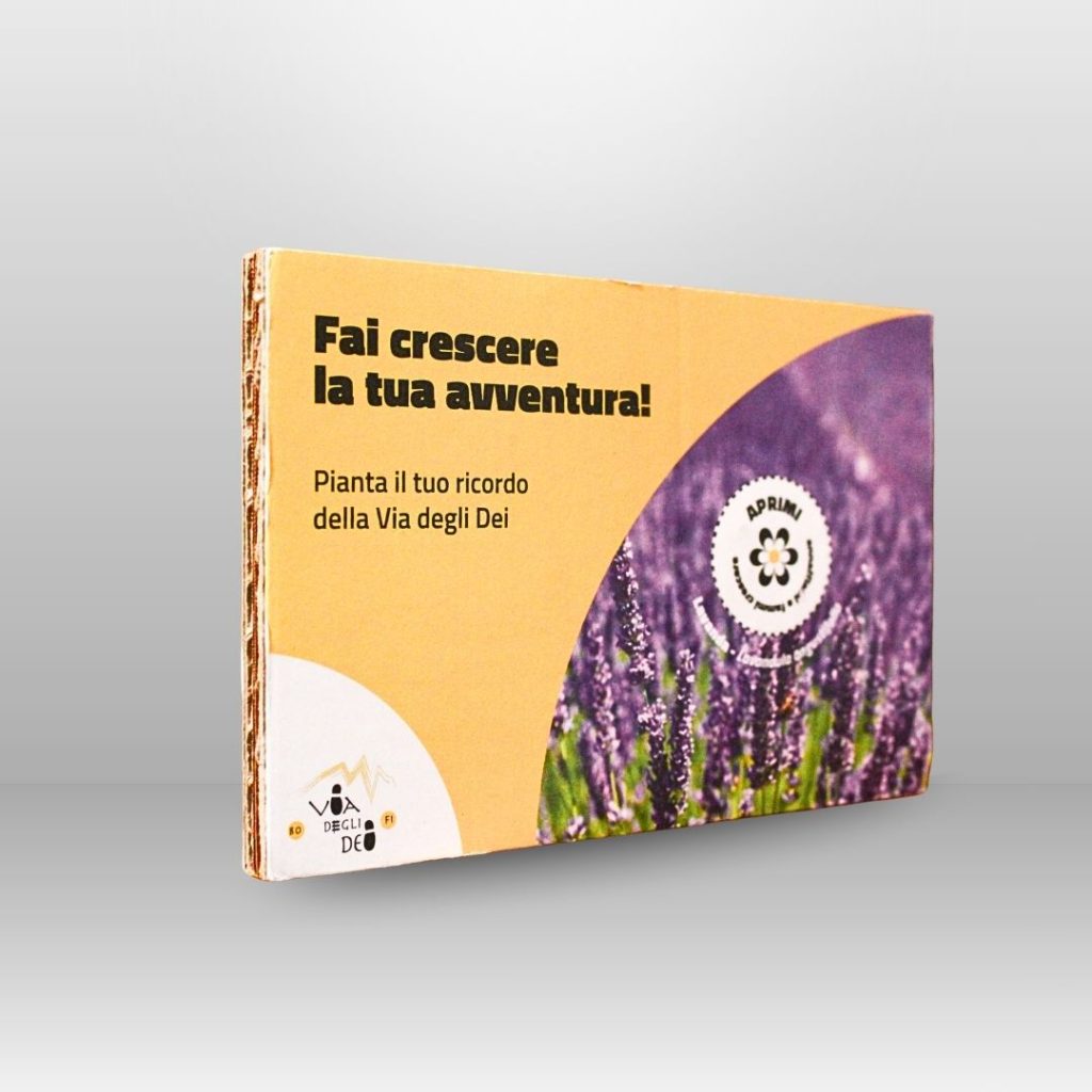 Cartolina ecologica Via degli Dei con semi di lavanda: piantala e lascia che nasca una pianta direttamente dalla carta.