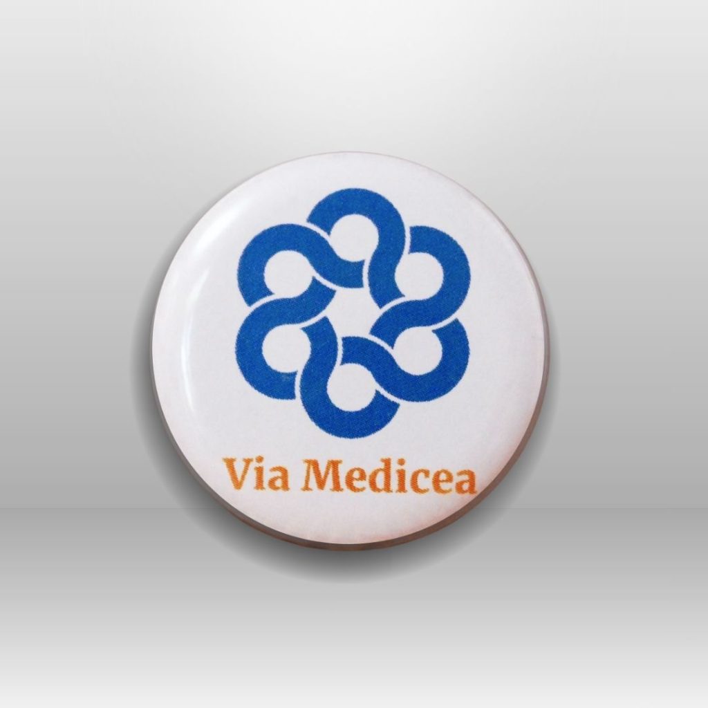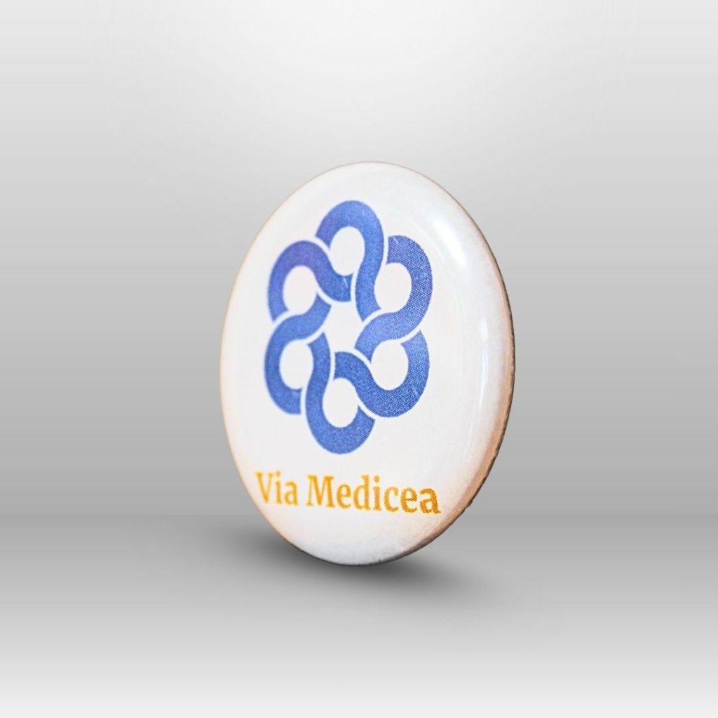 Spilla ufficiale della Via Medicea: piccolo distintivo bianco o giallo, da applicare su zaini e giacche.