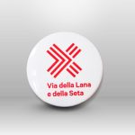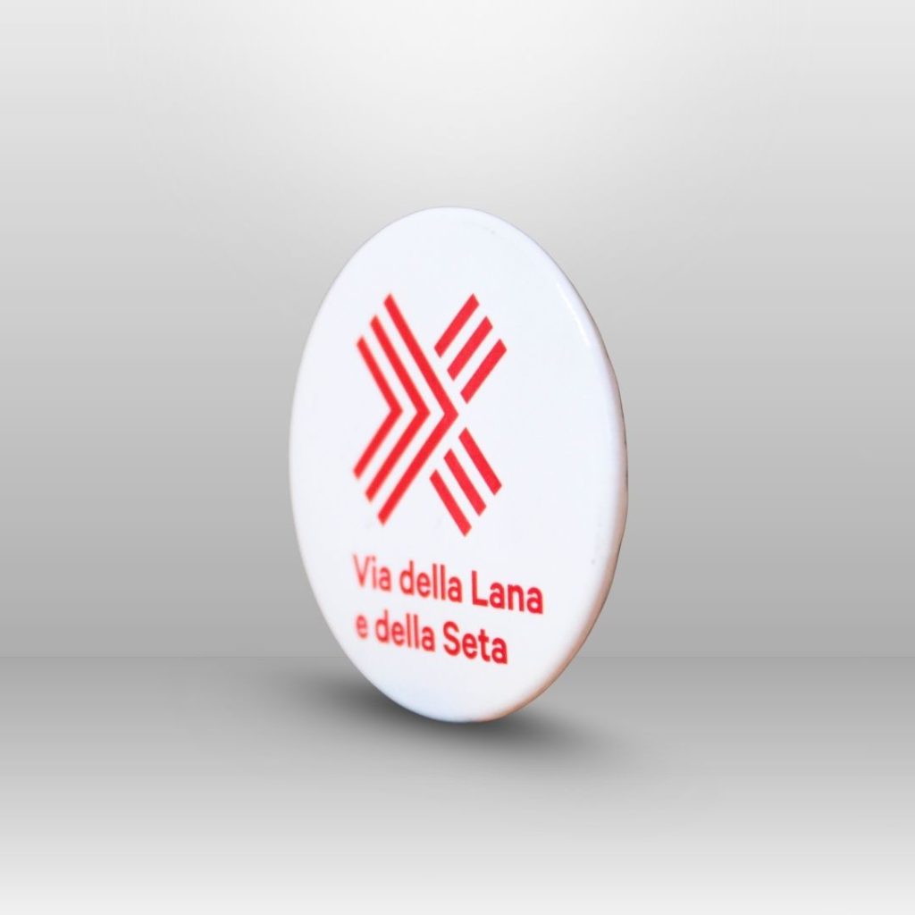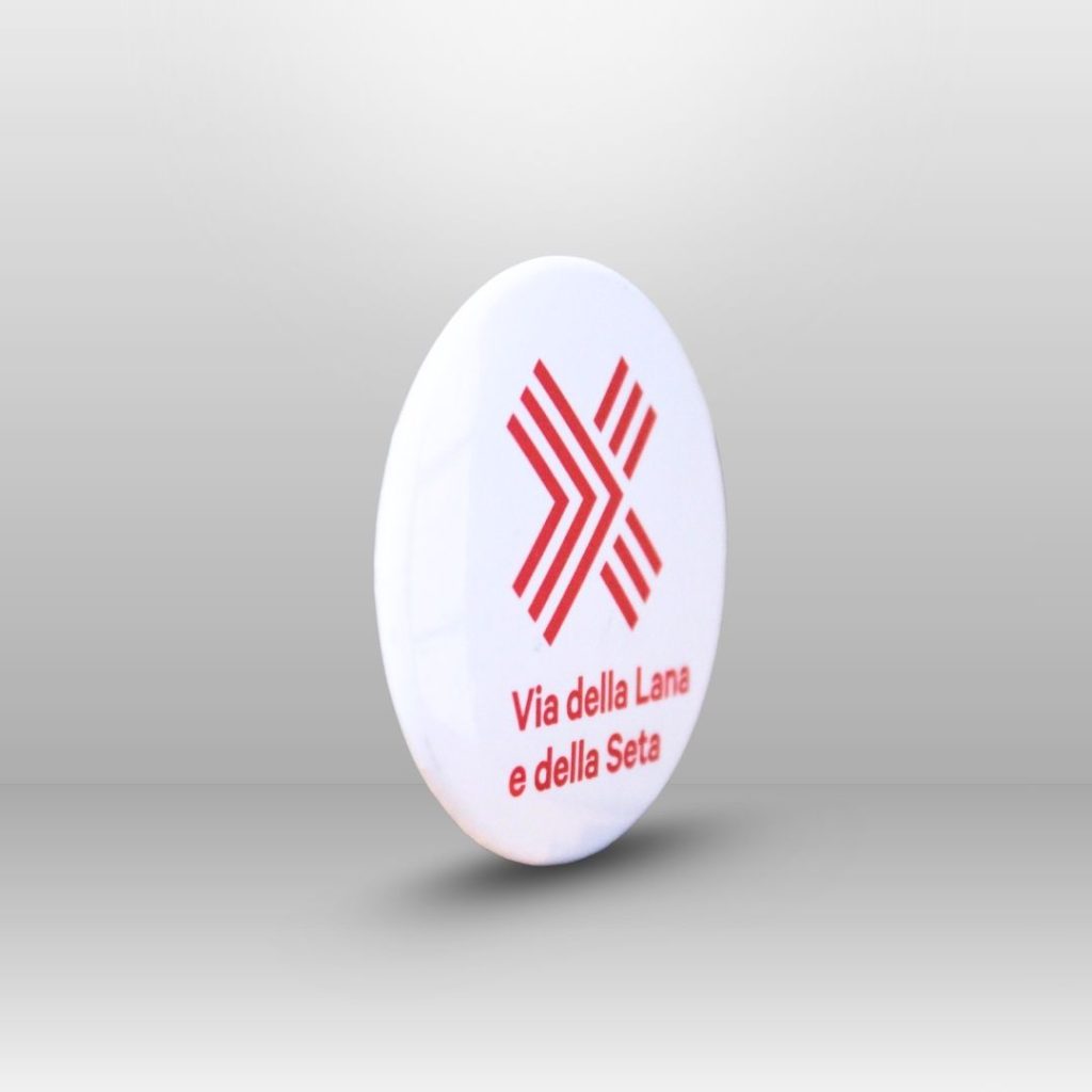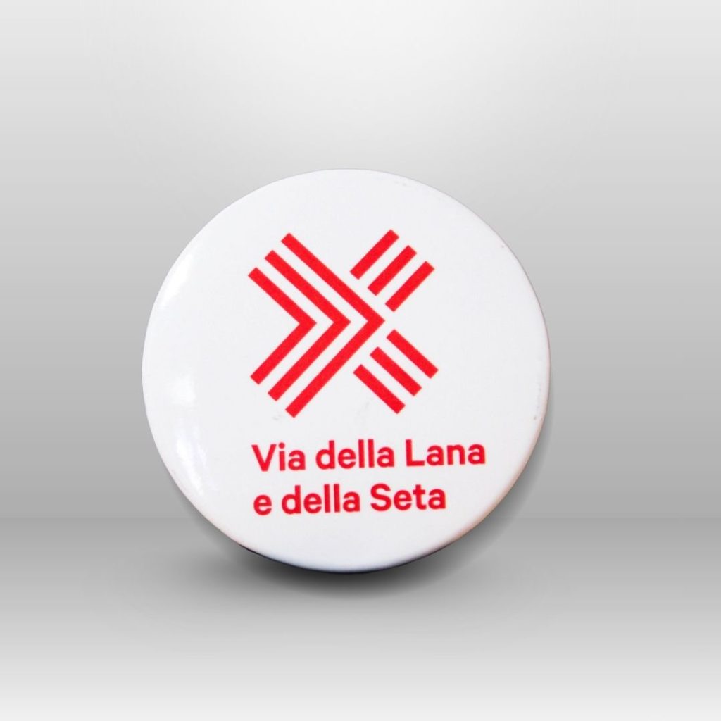 Spilla ufficiale della Via della Lana e della Seta, un piccolo gadget per conservare il ricordo del cammino.