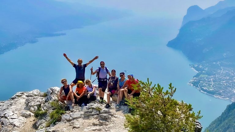 Proseguiremo poi verso Punta Larici, celebre per una delle viste più incredibili dell’intero lago, un balcone naturale che domina l’intero bacino. La discesa finale si svilupperà per 5,5 km sullo storico Sentiero del Ponale, oggi ciclopedonale ma per decenni unica via di collegamento con la Valle di Ledro. Raggiungeremo Riva del Garda, elegante cittadina dal fascino alpino-mediterraneo.