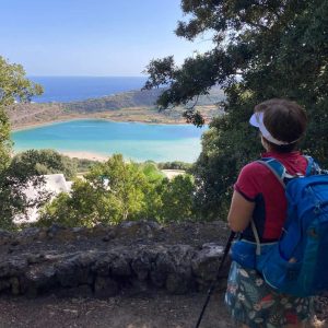 Partiremo dallo Specchio di Venere, camminando lungo la sua riva prima di salire verso contrada Bugéber e poi verso San Vito, tra ulivi, capperi e filari di vite Zibibbo.