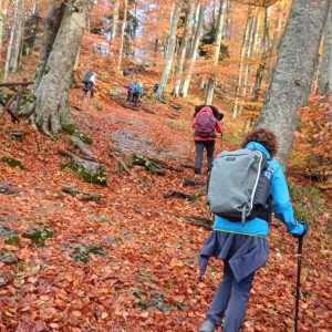 Ripartiremo dal rifugio in direzione dei grandi crinali del Parco Nazionale, seguendo percorsi panoramici che segnano il confine tra Toscana ed Emilia-Romagna. Cammineremo tra faggete monumentali, radure luminose e versanti che in autunno si trasformano in un caleidoscopio di colori grazie al foliage. Sarà una giornata dedicata ai paesaggi d’alta quota, con ampie viste che accompagnano ogni passo. Rientreremo al rifugio nel pomeriggio per concludere la tappa immersi nella magia delle Foreste Casentinesi.