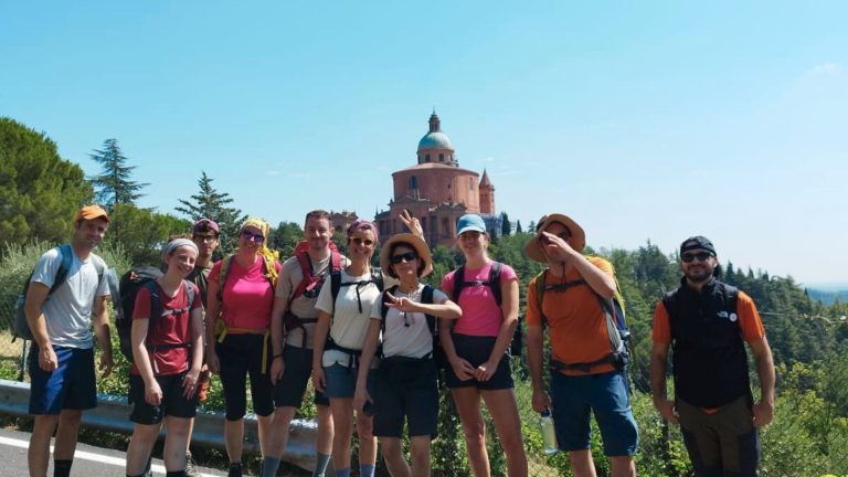 Ci ritroveremo alle 8:00 in stazione a Bologna, consegneremo i bagagli e ci muoveremo verso Piazza Maggiore per iniziare il cammino insieme agli altri partecipanti under 40. Attraverseremo il centro cittadino e saliremo al Colle della Guardia, fino alla Basilica di San Luca, prima grande tappa condivisa.