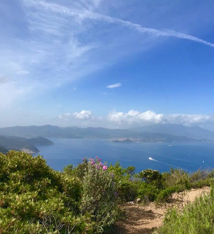 Poco dopo Punta Pina, il sentiero, dentro ad una macchia tipica mediterranea, inizia a salire fino al cospetto del castello del Volterraio; si continua a salire fino al sentiero di crinale e cammineremo “avvolti dal mare” fino a raggiungere la Cima del Monte (515 m slm). Per raggiungere Porto Azzurro, percorreremo un bellissimo vallone fitto di lecci, in discesa e abbastanza impegnativo che ci condurrà fino al panoramico Santuario della Madonna del Monserrato. A risanarci dalle fatiche quotidiane sarà la spiaggia Barbarossa. Dopo un tuffo, attraverso un comodo e semplice sentiero lungo la costa, in mezz’ora raggiungeremo Porto Azzurro.